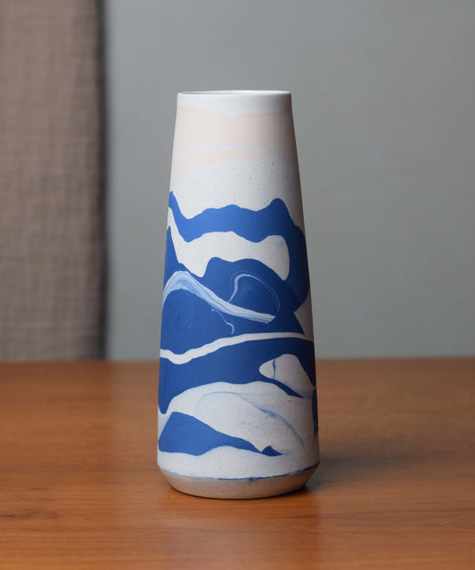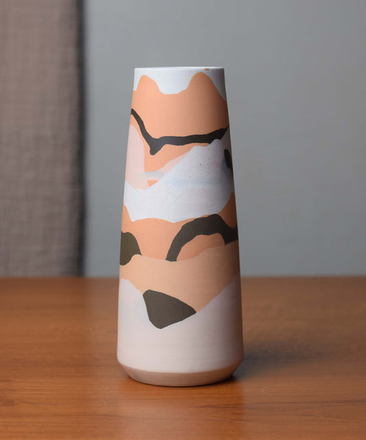 The Dreamlands Vase collection derives its name from the enchanting landscapes portrayed through interwoven layers of gentle muted colours. Every unique piece within this captivating collection encapsulates a dreamy aesthetic, evoking a sense of enchantment and serenity.