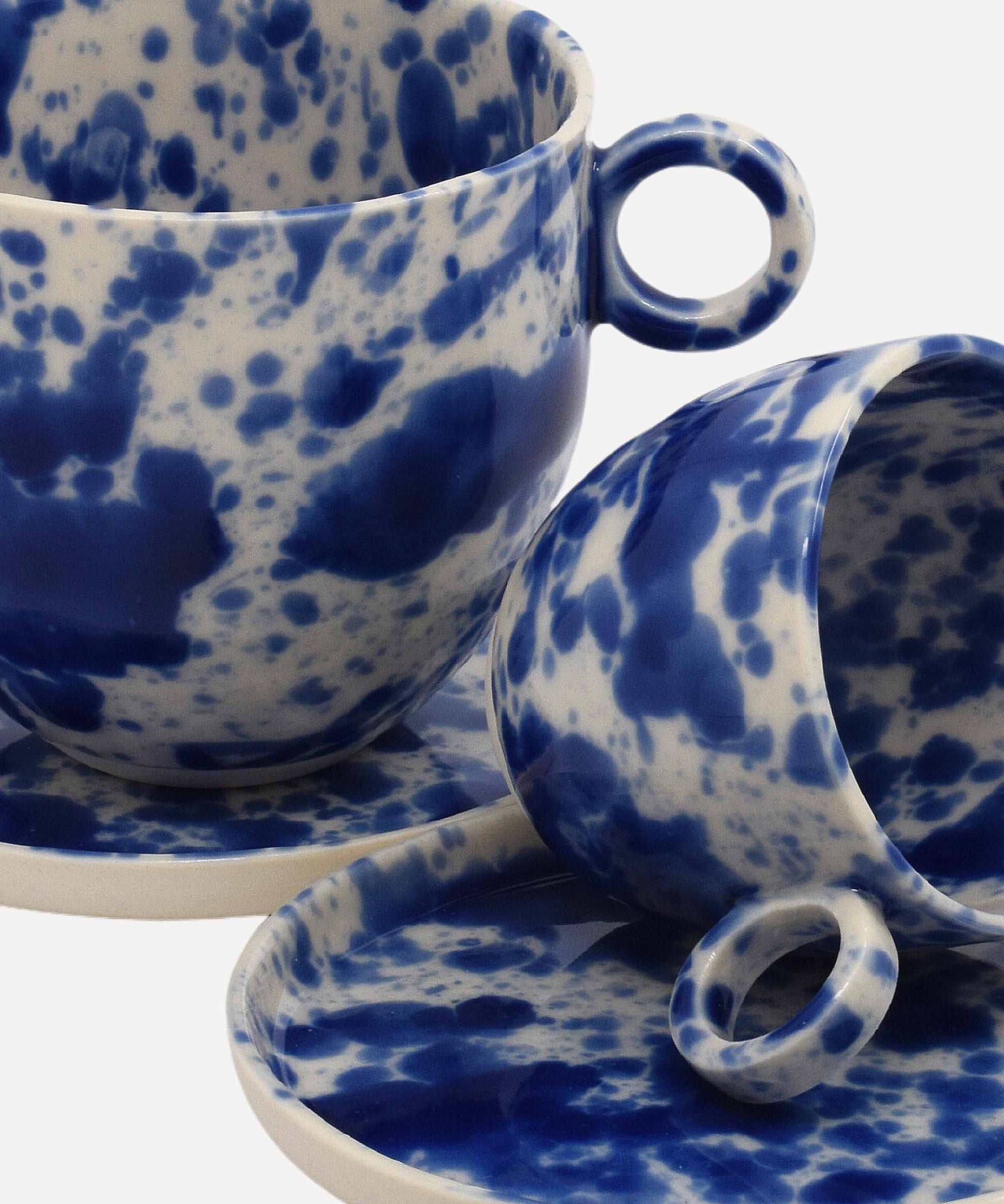 Slip cast porcelain with a hand painted splattered glaze finish. Due to the making process each piece is individual and has its own unique markings.