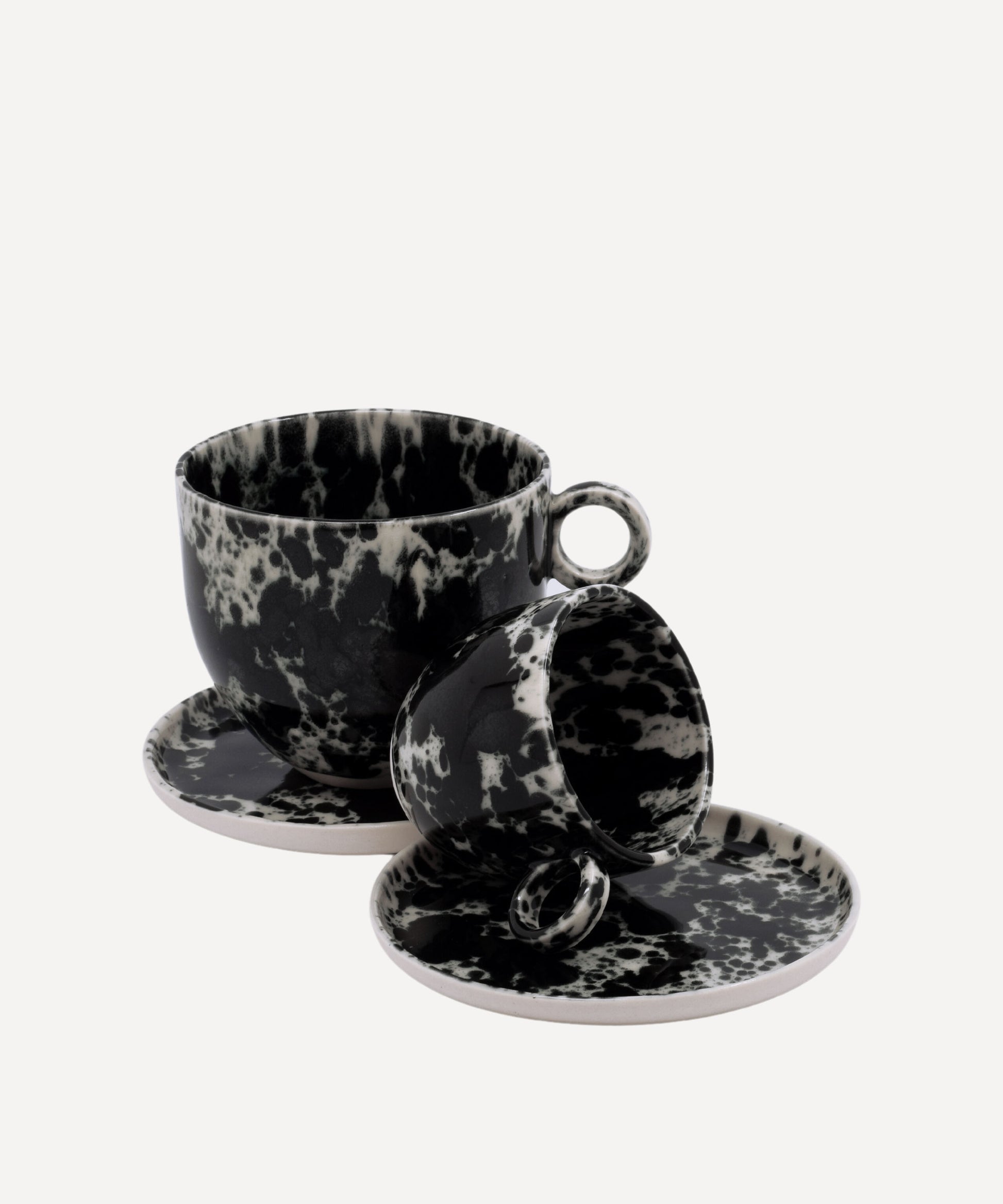 Slip cast porcelain with a hand painted splattered glaze finish. Due to the making process each piece is individual and has its own unique markings.