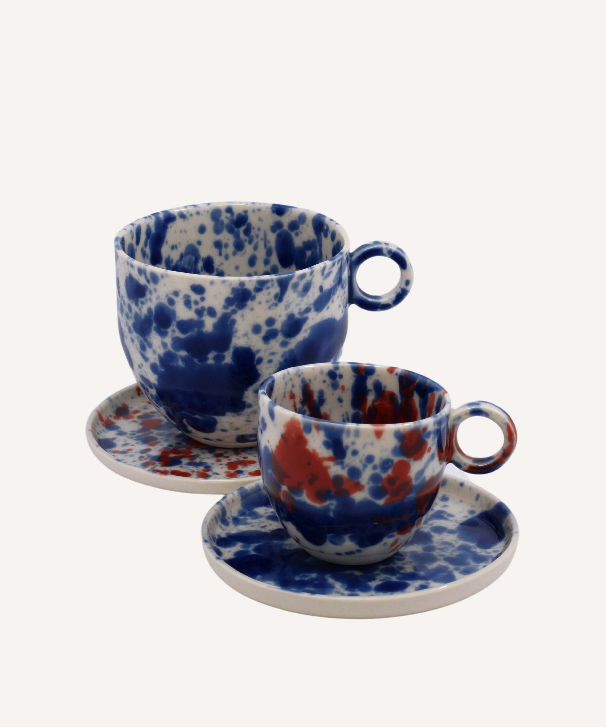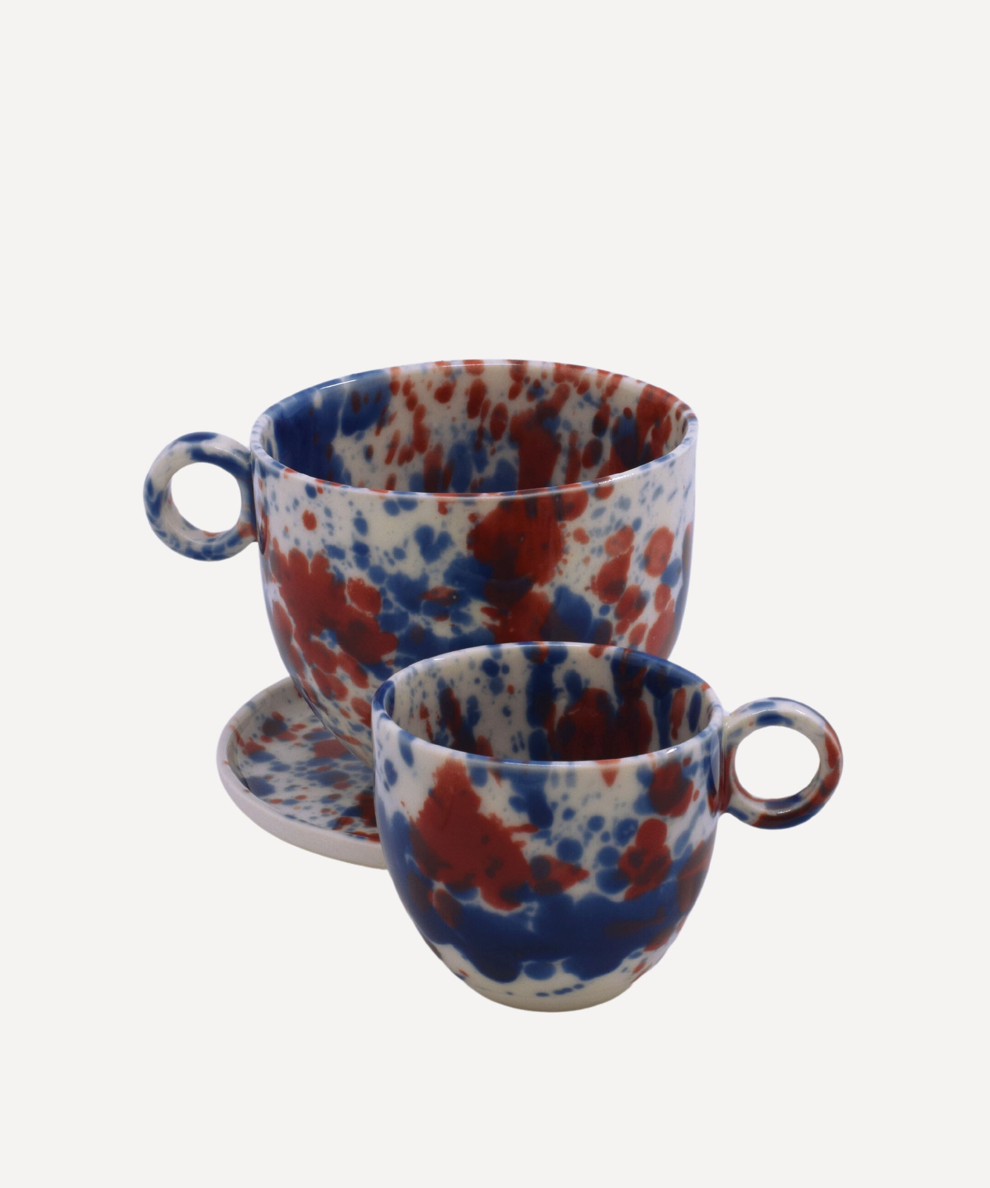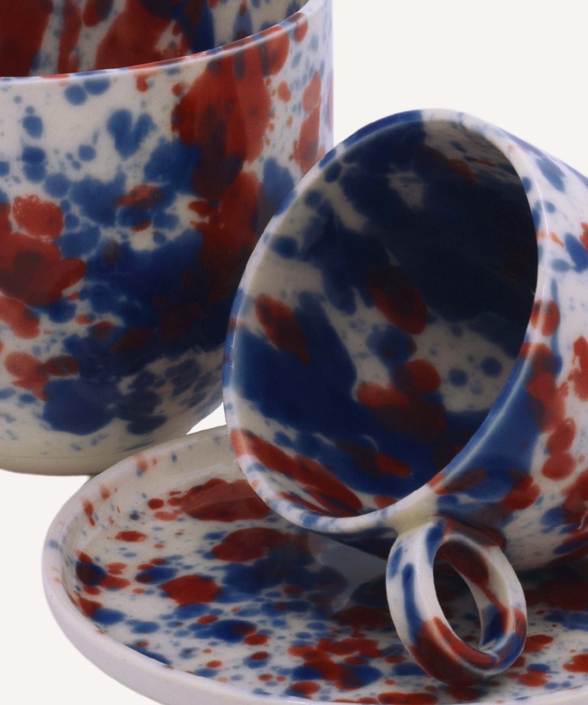 Slip cast porcelain with a hand painted splattered glaze finish. Due to the making process each piece is individual and has its own unique markings.