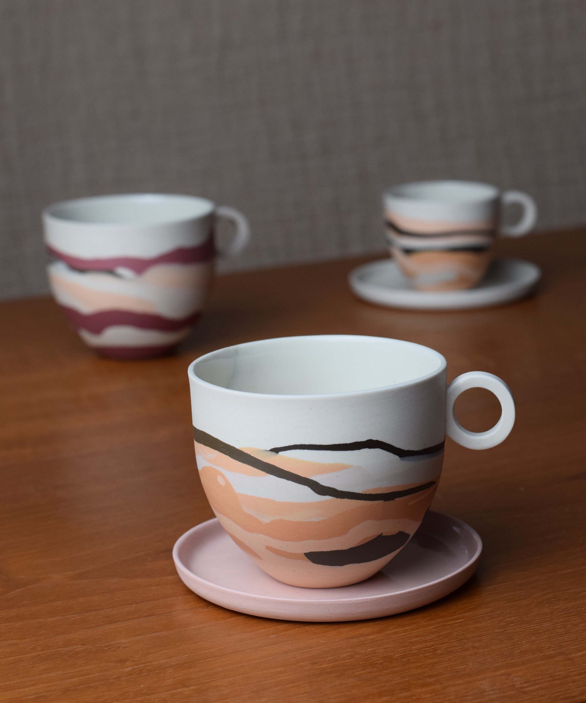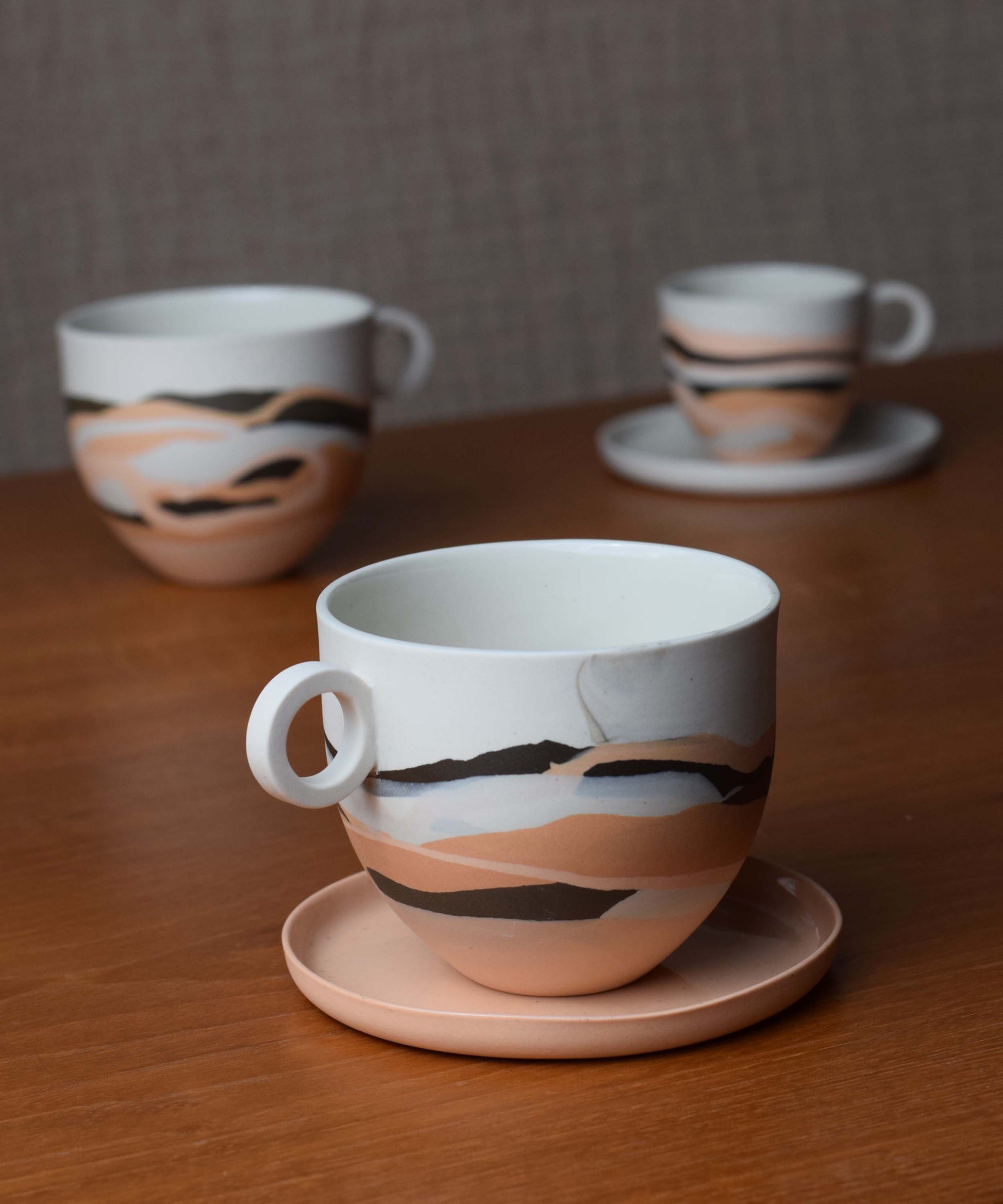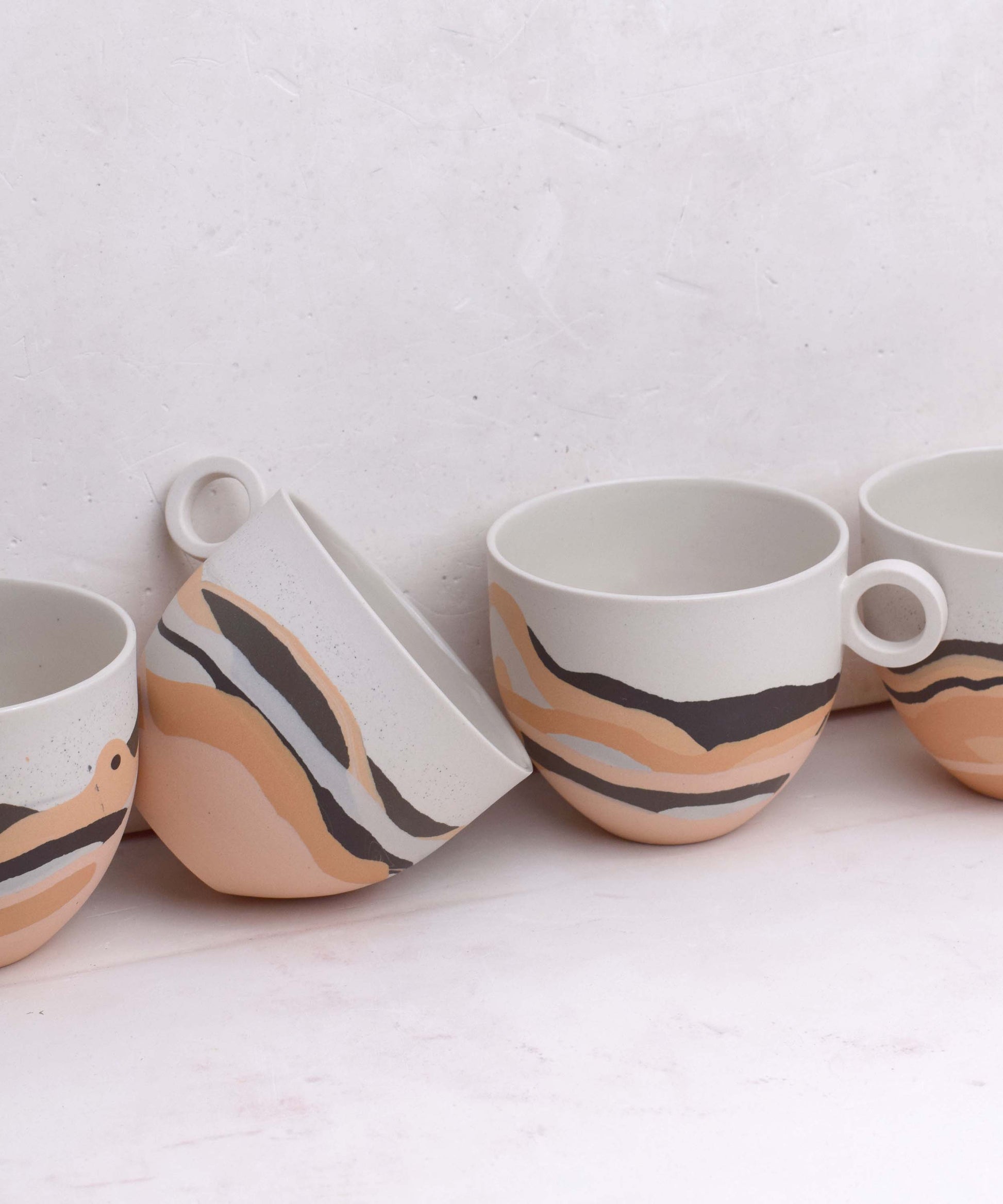 The mugs featured in the photographs represent the style. Due to the making process, each piece is individual and the shades of colours may vary slightly. Each piece is unique and can not be duplicated therefore a mug will be randomly selected from the edition and sent to you.
