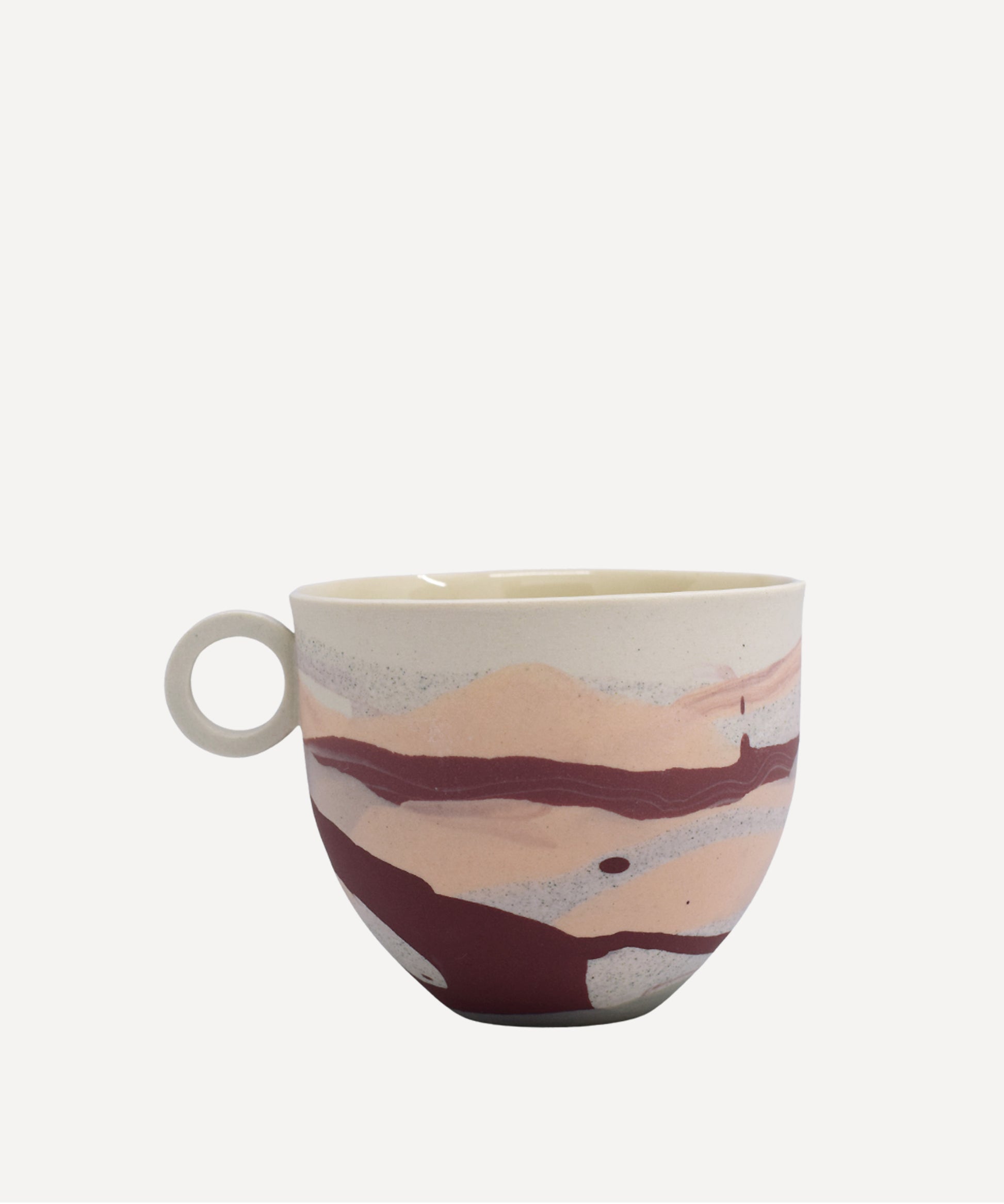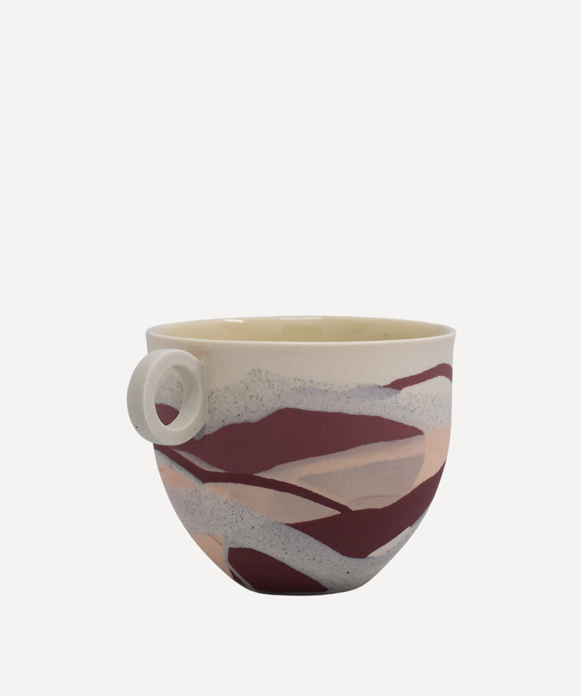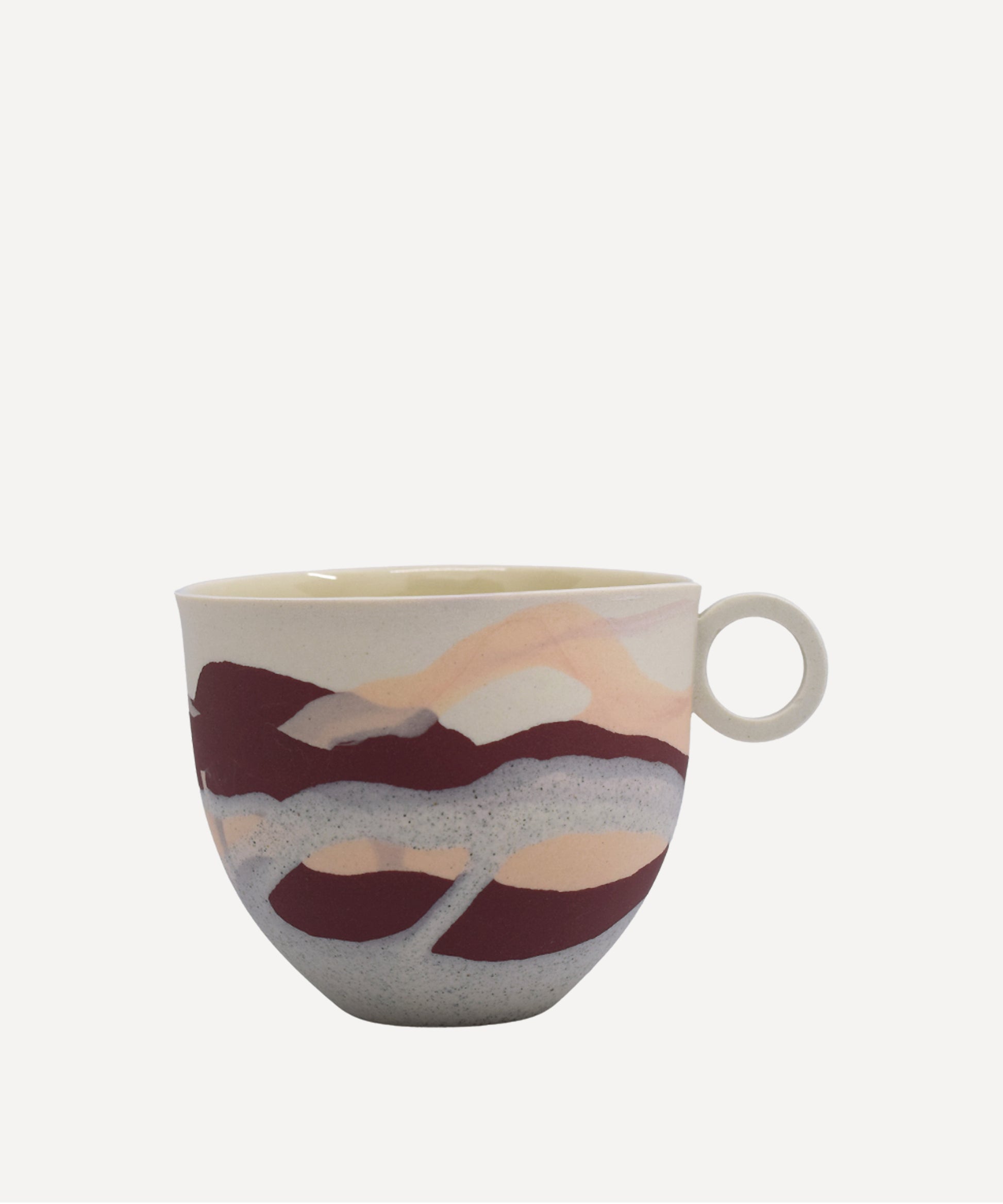 The outside of the mug has a smooth matt finish in contrast to a glossy inside, where a clear glaze has been applied for functionality.