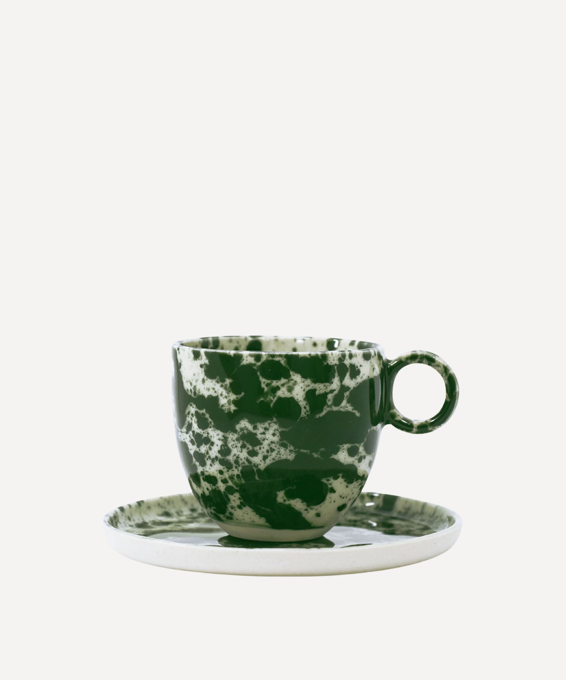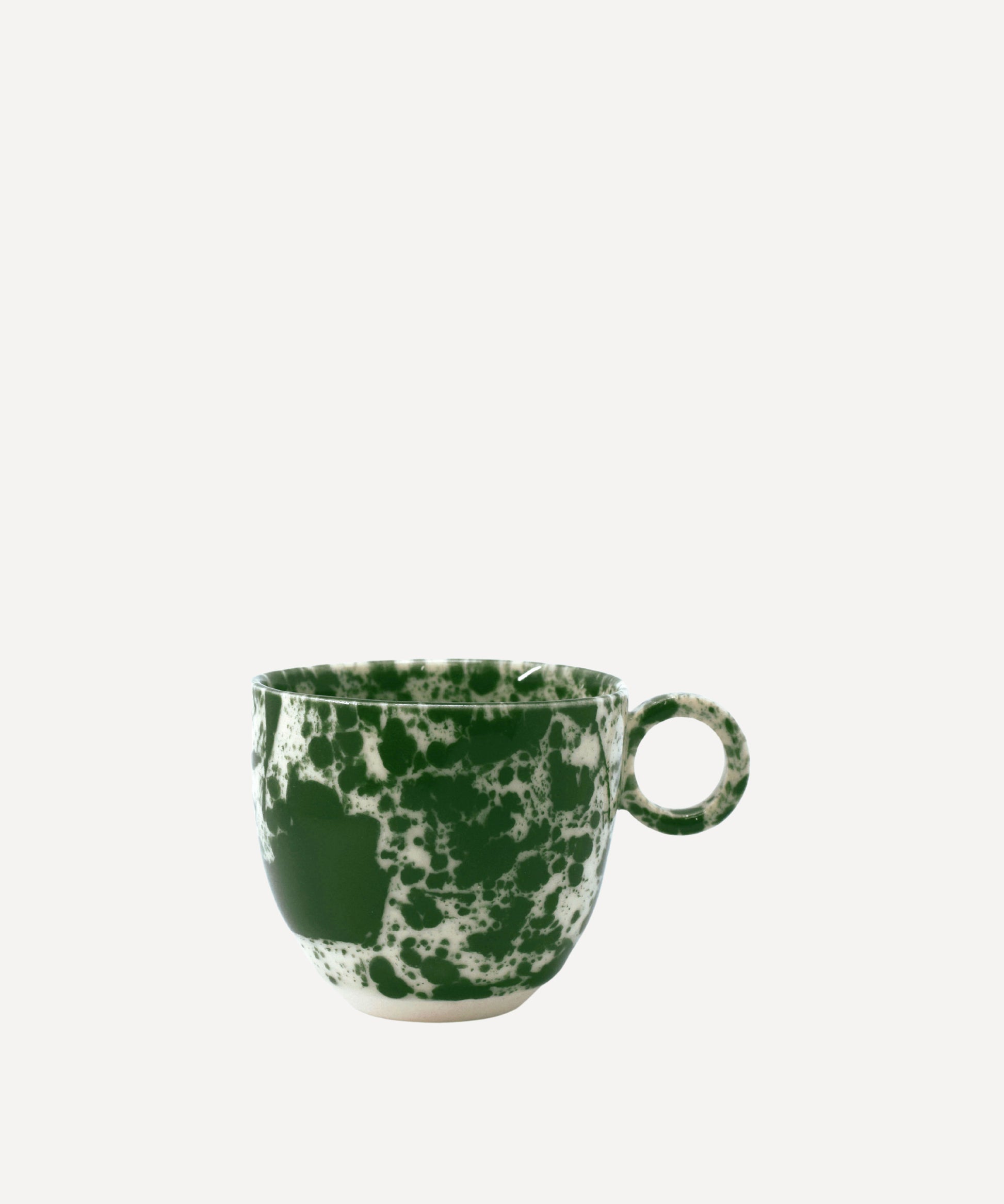 Slip cast porcelain with a hand painted splattered glaze finish. Due to the making process each piece is individual and has its own unique markings.