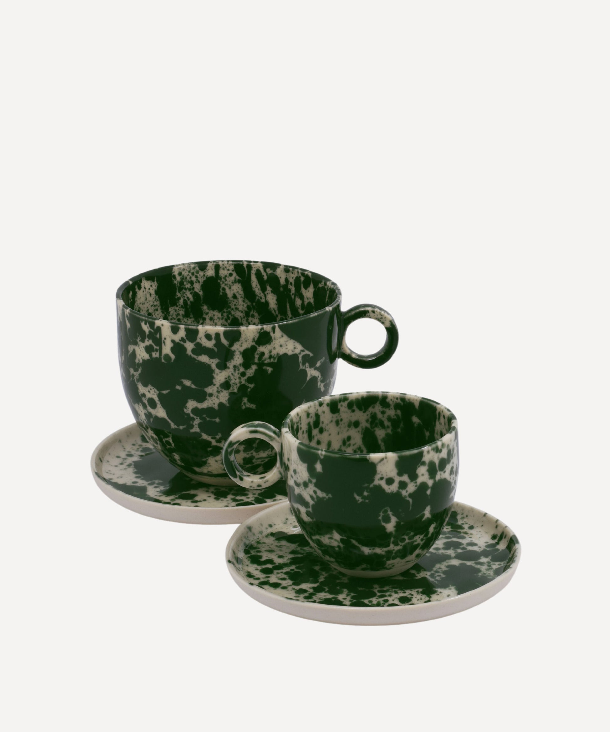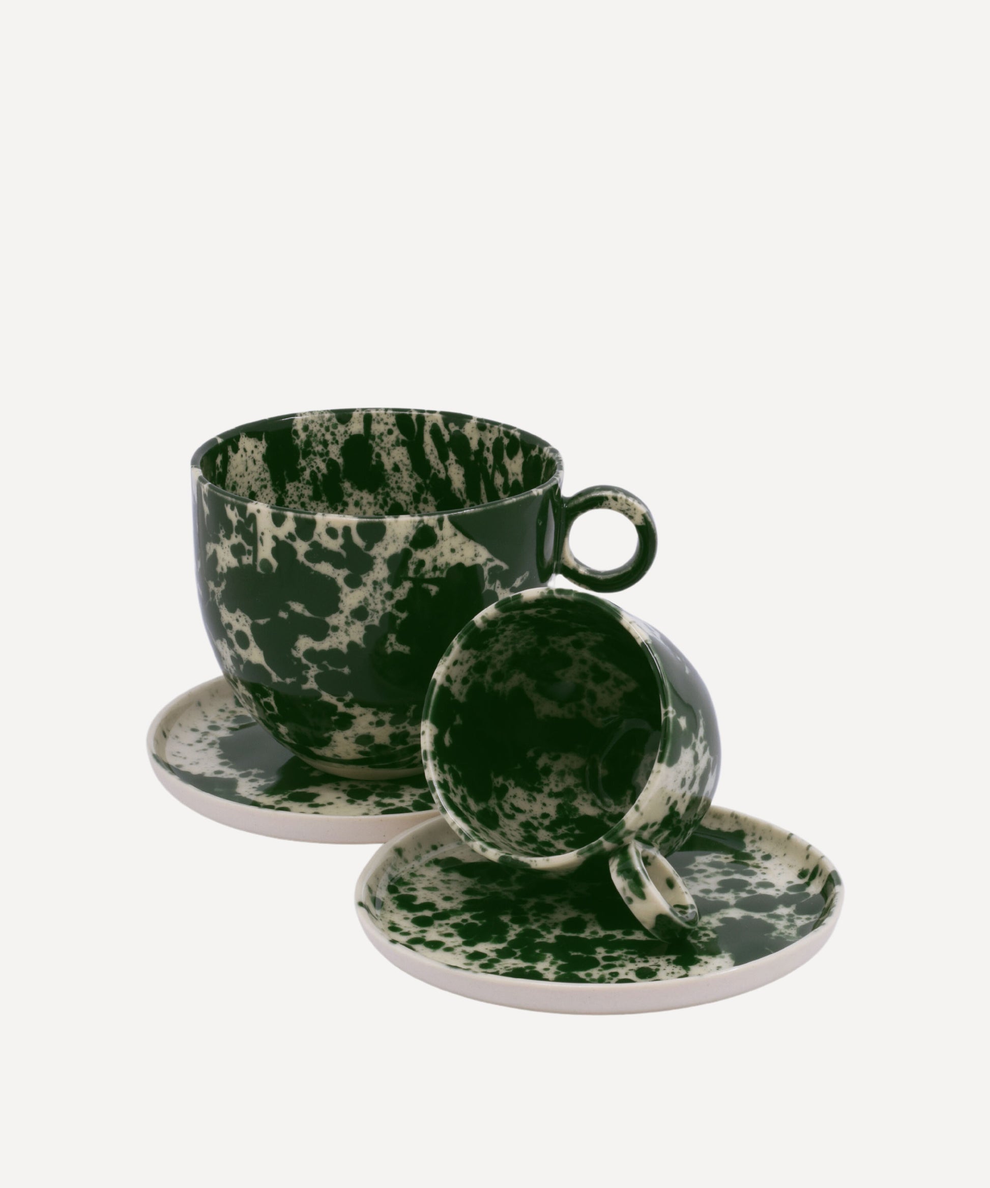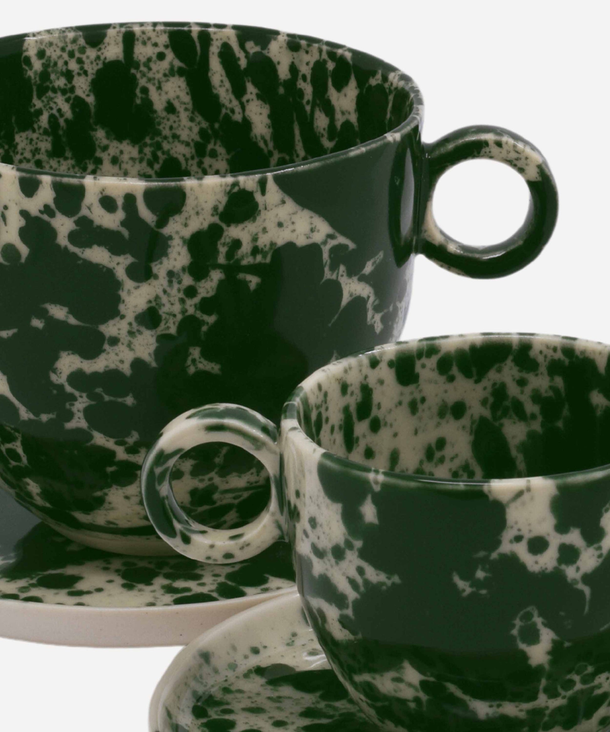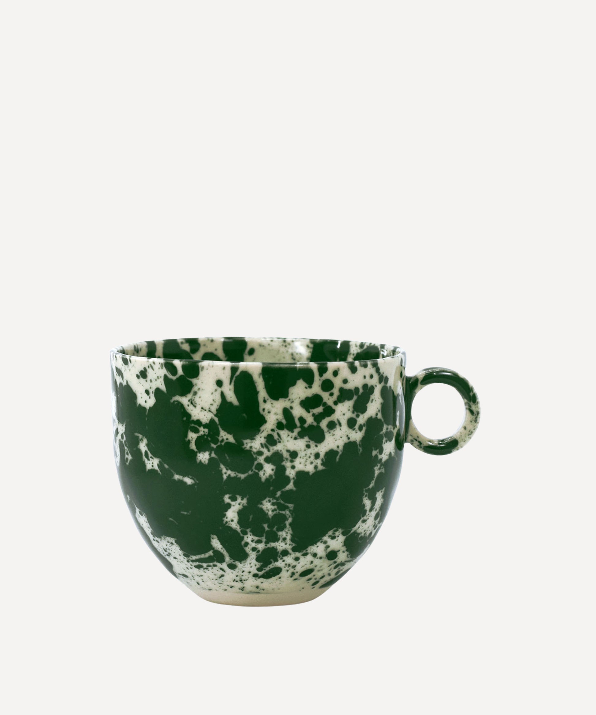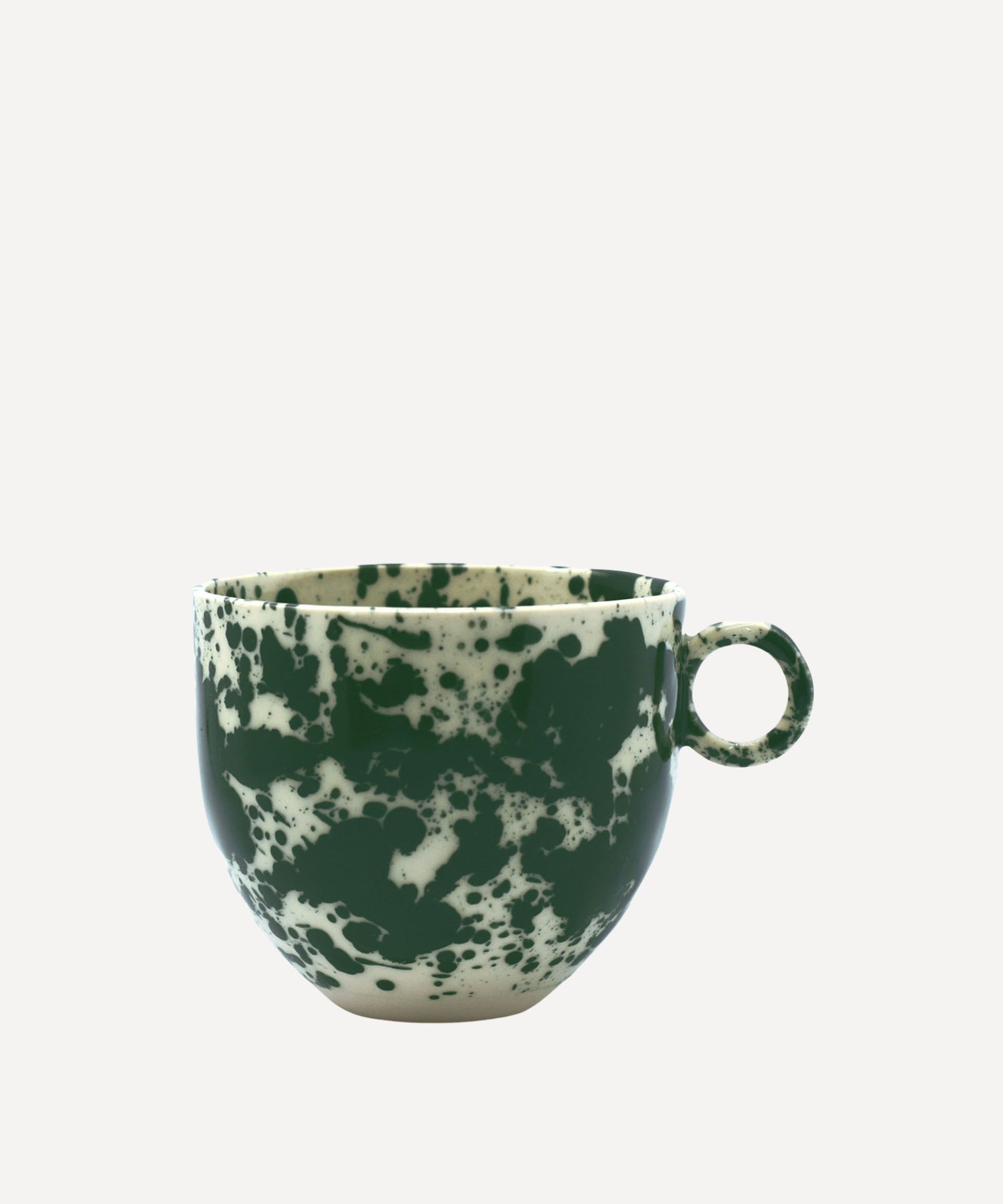 Slip cast porcelain with a hand painted splattered glaze finish. Due to the making process each piece is individual and has its own unique markings.