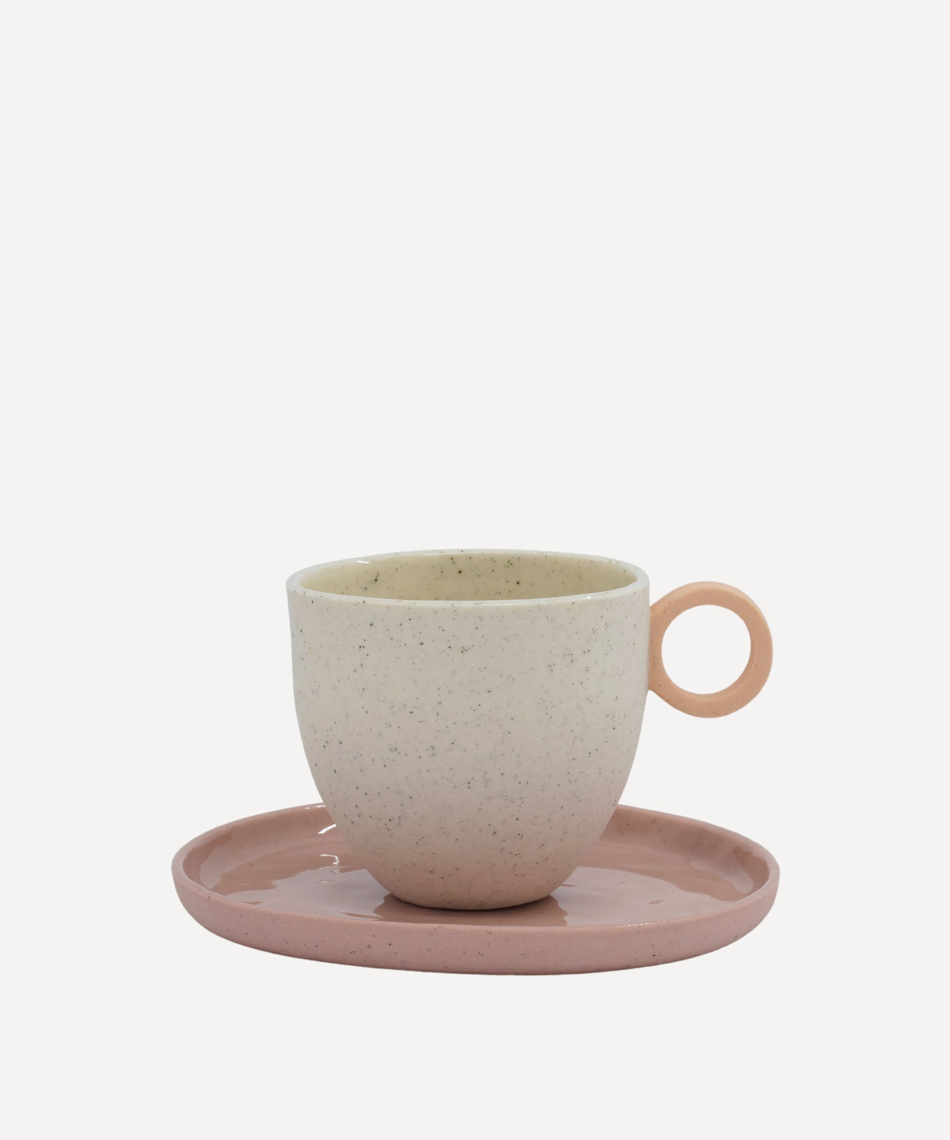 The espresso cup has been slip-cast with slip-containing iron, creating a beautiful speckle throughout. The outside of the cup has a smooth matt finish in contrast to a glossy inside, where a clear glaze has been applied for functionality.