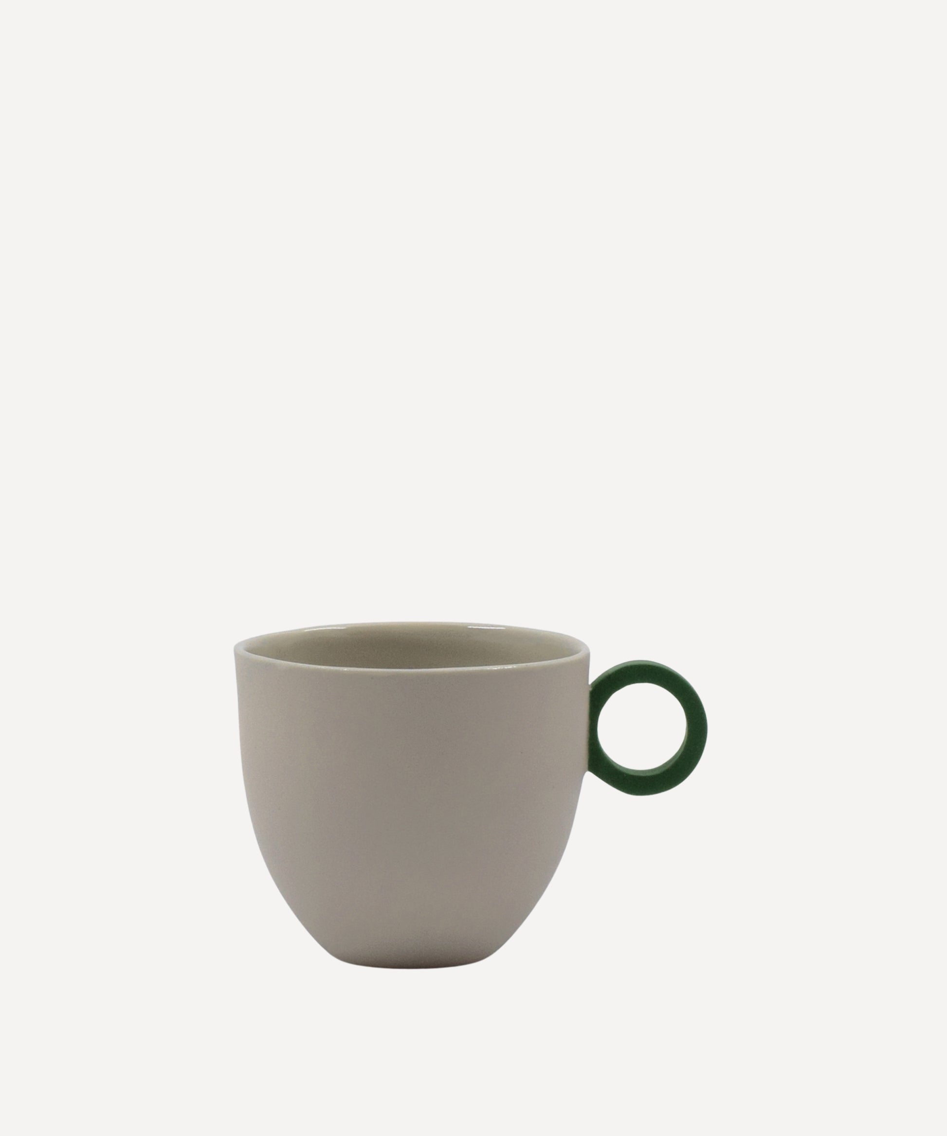 The collection has been slip-cast with a slip that has been stained with ceramic pigment to create colour throughout the piece. The outside of the cup has a smooth matte finish in contrast to a glossy inside, where a clear glaze has been applied for functionality.