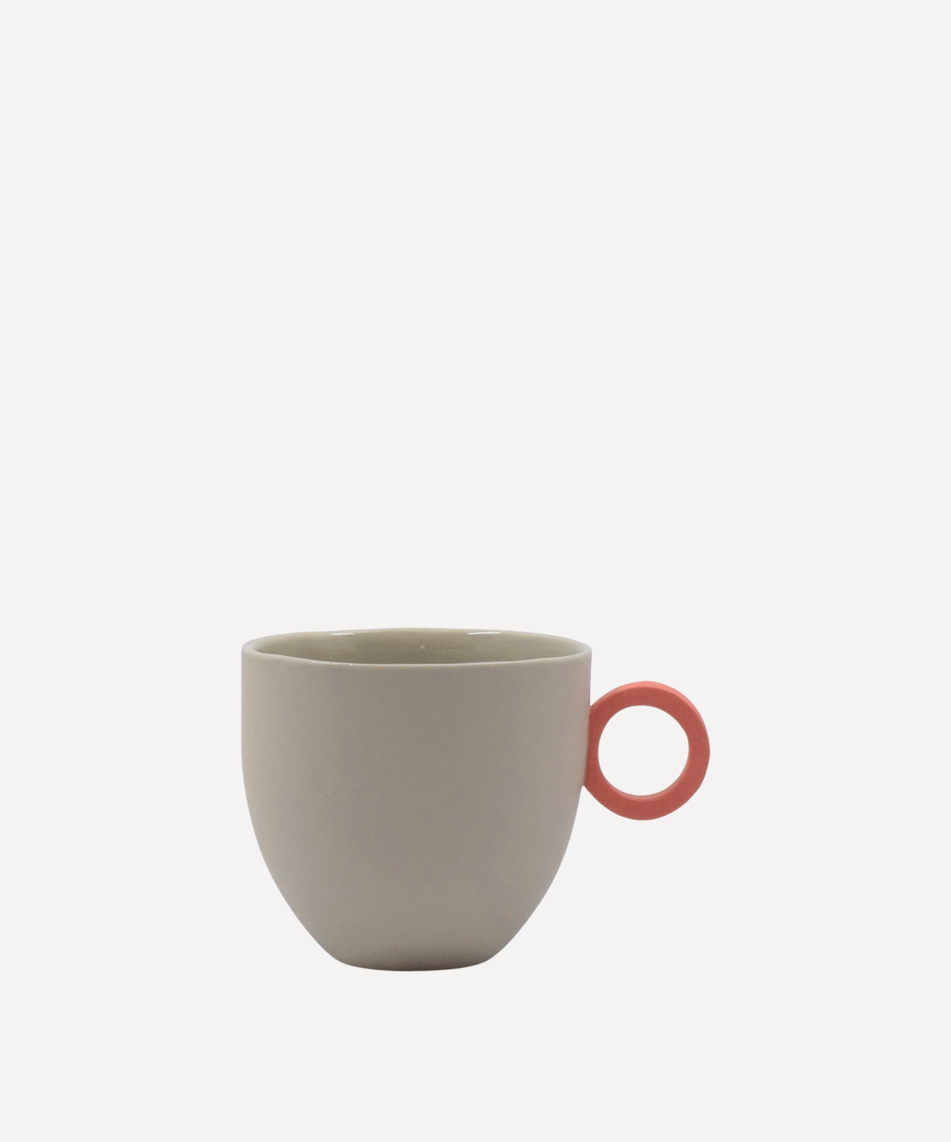 The collection has been slip-cast with a slip that has been stained with ceramic pigment to create colour throughout the piece. The outside of the cup has a smooth matte finish in contrast to a glossy inside, where a clear glaze has been applied for functionality.