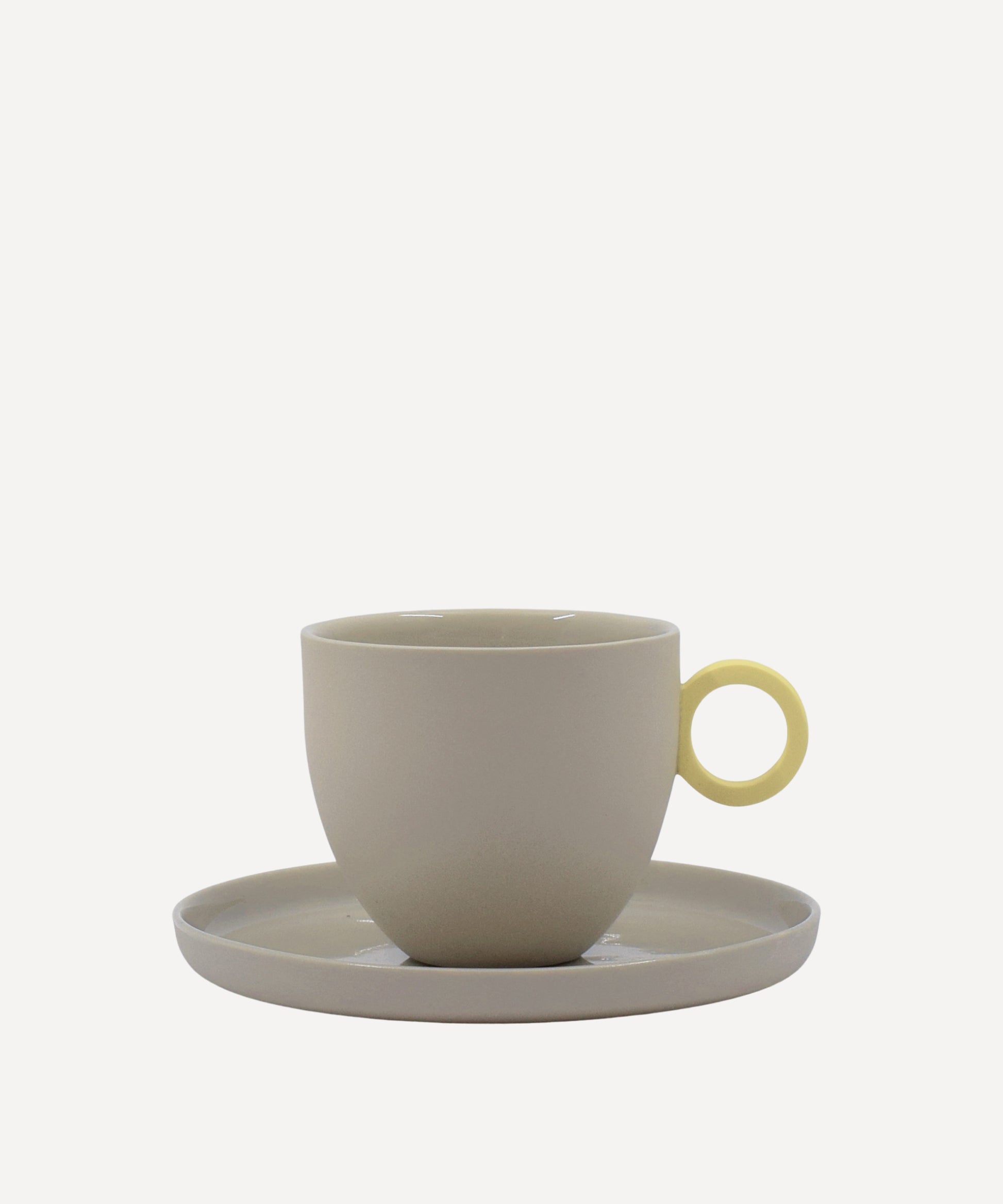 Syros Grey Espresso Cup with Yellow Ring Handle