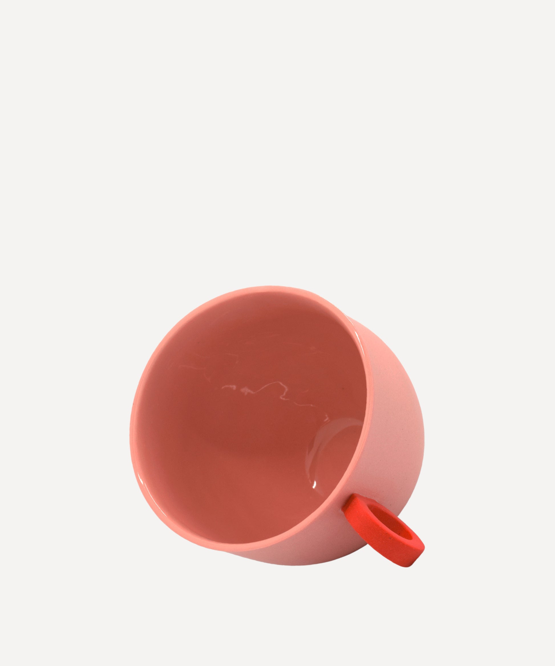 The mug has been slip-cast with a slip that has been stained with ceramic pigment to create colour throughout the piece. The outside of the mug has a smooth matt finish in contrast to a glossy inside, where a clear glaze has been applied for functionality. This is a handmade item and each mug has its nuances, some are completely round whilst others are slightly more oval.